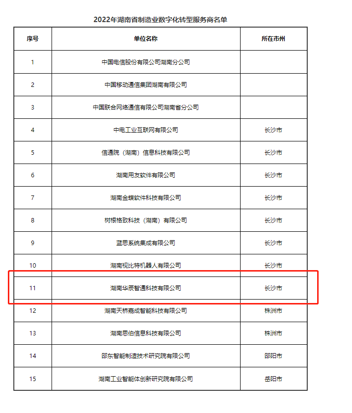5月27日,在湖南省工信廳的精心組織和安排下,在眾多優秀企業的激烈角逐中,華辰智通脫穎而出,成功入選2022湖南省制造業數字化轉型服務商名單,這充分代表了華辰智通在湖南省制造業數字化轉型解決方案的實力,也淋漓盡致地體現了省工信廳及各位專家對華辰智通的認可。