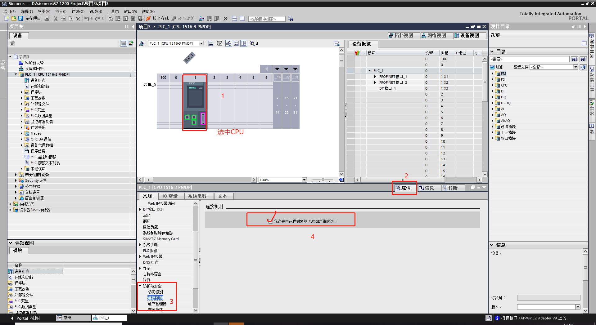 1.進(jìn)入博圖,“常規(guī)-保護(hù)”,連接機(jī)制勾選“允許從遠(yuǎn)程伙伴使用PUT/GET通信訪問(wèn)”,重啟PLC。