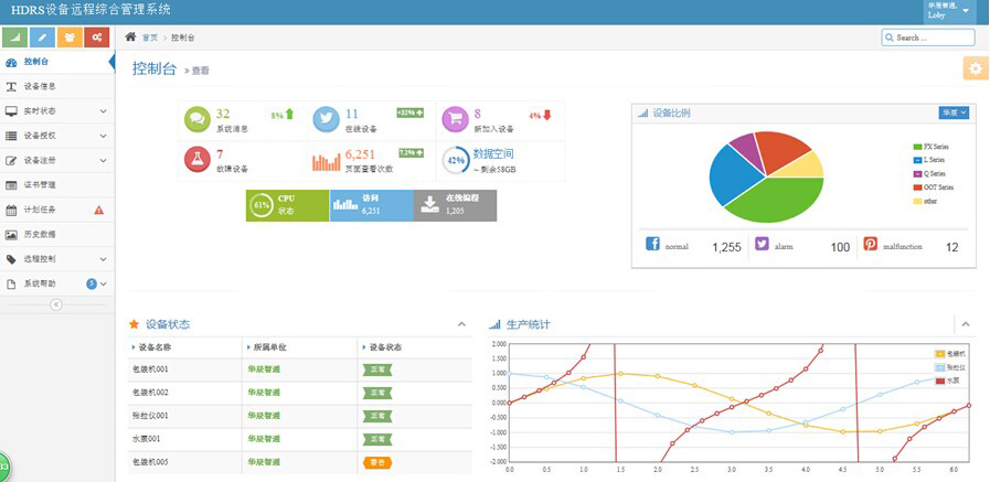 華辰智通科技集團針對制藥機械中小企業的這一技術及資金短板,提出了一套基于HDRS平臺的“醫藥機械遠程監控及故障預警診斷系統”。HDRS設備云遠程監控系統是華辰智通科技集團針對機械設備特別是醫藥設備過于分散不便集中管理維護而自主研發的設備遠程監控系統。該系統不僅能實現設備的遠程綜合管理,同時能實現設備的故障預警及遠程故障診斷。從而幫助中小制藥機械廠商建立一套高效的設備管理及維護體系,提高管理以及技術優勢。