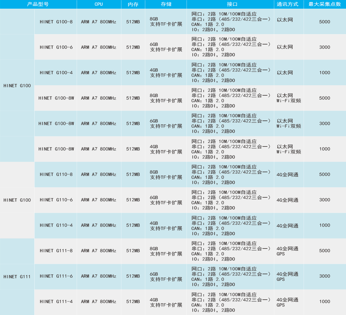 HINET·G系列邊緣計算網關,是華辰智通最新推出的—款面向工業現場設備接入、數據采集、設備監控的工業級邊緣計算網關。采用ARM Cortex-A7 800MHz高性能CPU,擁有以太網、串口、CAN口、IO口等豐富的接口,支持以太網、2G/3G/4G網絡接入方式,可滿足絕大部分工業應用場景及工業設備接入。